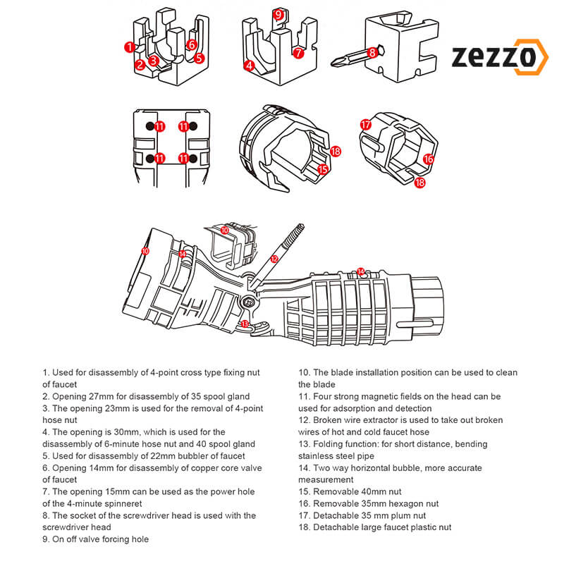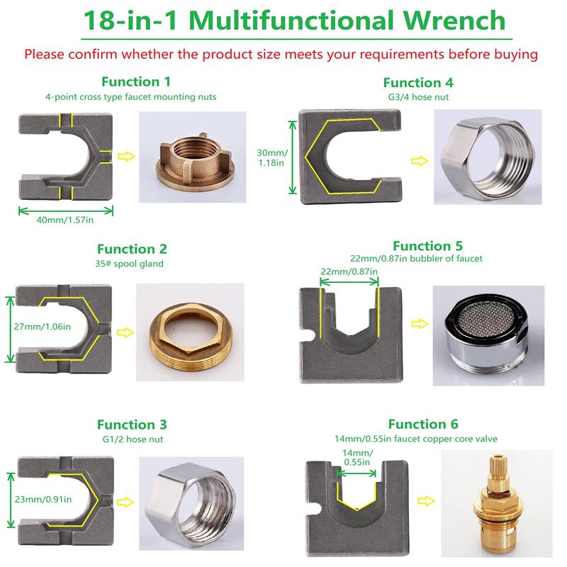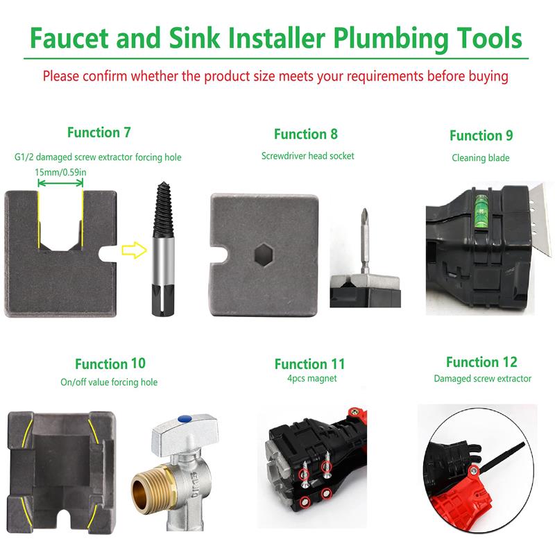 - Съдържание на пакета: 1 x 18 в 1 инструмент за монтаж на кранове и мивки