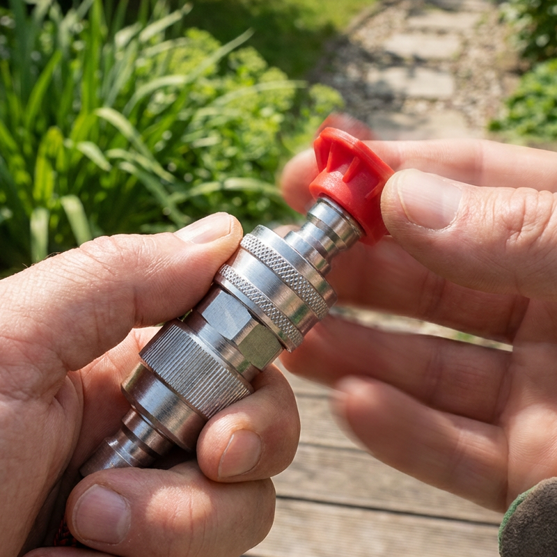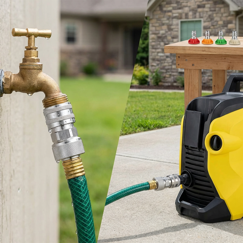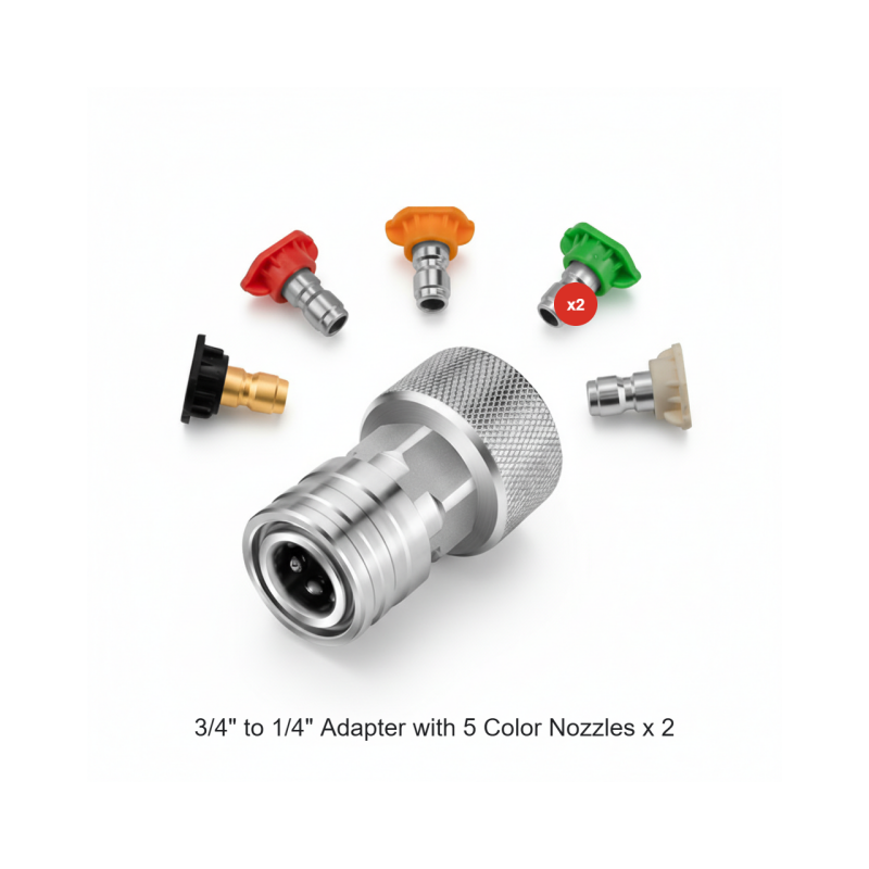 БЪРЗО ПРЕОБРАЗУВАНЕ НА ВРЪЗКАТА - Без усилие превръща стандартен градински маркуч в 1/4-инчов бърз съединител. Това позволява бързо свързване и разединяване на дюзи, накрайници и други аксесоари за миялни машини под налягане, което значително ускорява почистването.