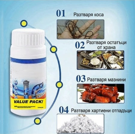 Използвайки формула с висока плътност, нашите продукти се залепват по стените на тръбите и променят нивото на pH, за да разтворят бързо запушването.