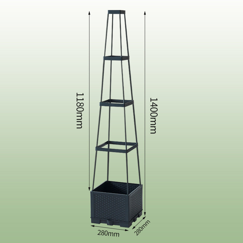 ИНТЕГРИРАНА КУТИЯ И ОПОРНА РЕШЕТКА - Той съчетава засаждане и опора в едно цялостно устройство. Този компактен дизайн осигурява стабилна основа за катерливи растения, като им помага да растат здравословно нагоре, без да е необходимо да се използват отделни колове или клетки.