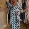 Интригуващ геометричен десен с прецизно подравняване - Тази рокля има ярък геометричен десен, който безпроблемно се слива по шевовете. Използваме усъвършенствана технология за печат, за да гарантираме, че десенът съвпада перфектно във всеки шев, като запазва острия контраст и богатите цветове дори след многократно пране. Висококачествените мастила са устойчиви на избледняване, напукване и лющене, което прави моделите дълготрайни и привличащи вниманието.