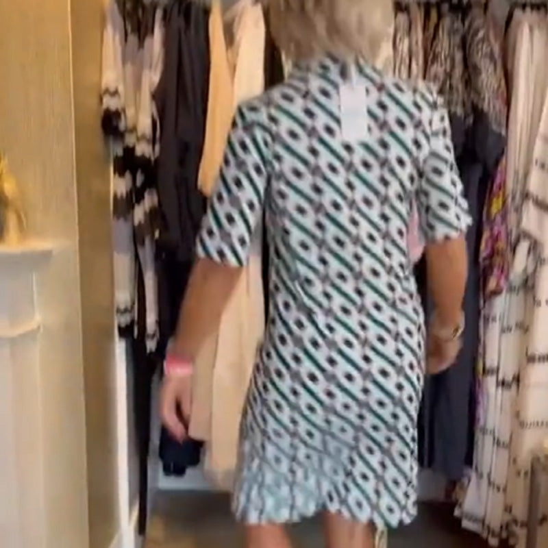 1 x Рокля с къс ръкав с геометричен принт и яка на риза