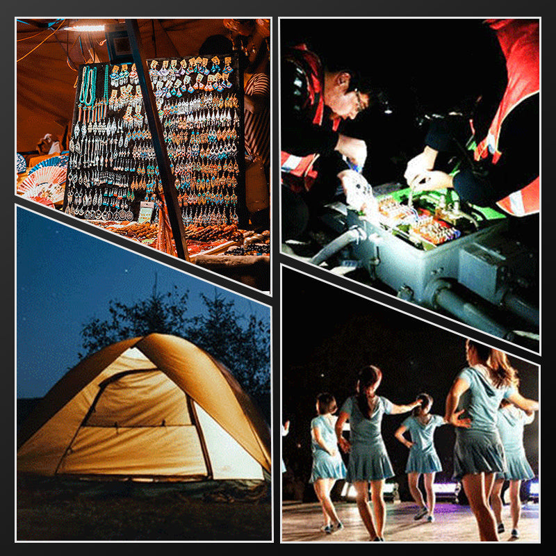 ДЪЛЪГ РЕЖИМ НА РАБОТА – ДЪЛГОТРАЙНО ОСВЕТЛЕНИЕ: Осветление, което трае часове, без да се налага да се занимавате с презареждане. Има до 9 часа работно време, което го прави идеален за нощни пазари, къмпингуване или неочаквани прекъсвания на електрозахранването. Благодарение на безжичния си дизайн, можете да го поставите удобно навсякъде.